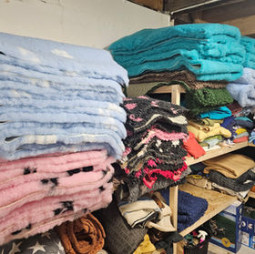 Die Hunde leben mit uns unter demselben Dach und sind in verschiedene Gruppen eingeteilt – je nach Alter, Grad ihrer Behinderung und danach, wie gut sie miteinander auskommen. Von jedem der sieben Räume, die für sie eingerichtet sind, können die Hunde den ganzen Tag über frei auf die eingezäunten Außenbereiche hinausgehen und selbst entscheiden, wo sie sich aufhalten möchten. Am Abend nach dem Abendessen – ebenso wie am Morgen – werden alle Decken und Schlafplätze erneut gewechselt. Von abends bis etwa 7 Uhr morgens verbringen die Hunde die Nacht im Haus.